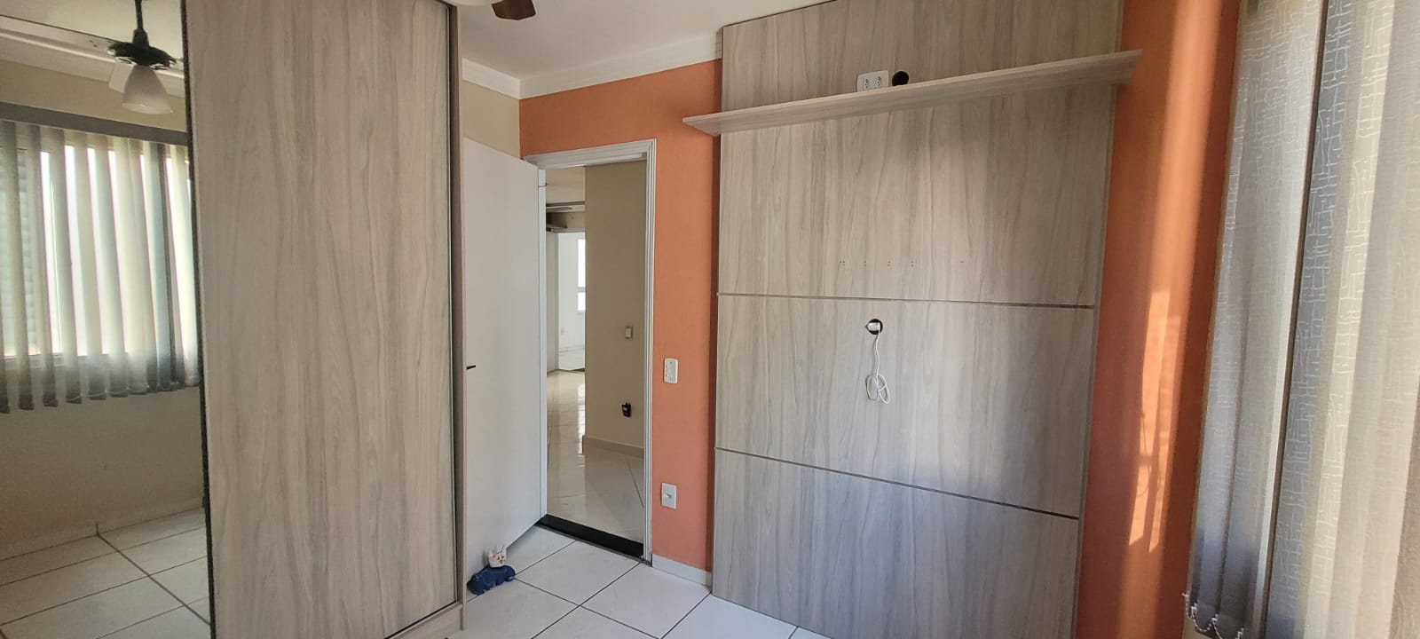 Quarto: com guarda roupa e painel de tv,