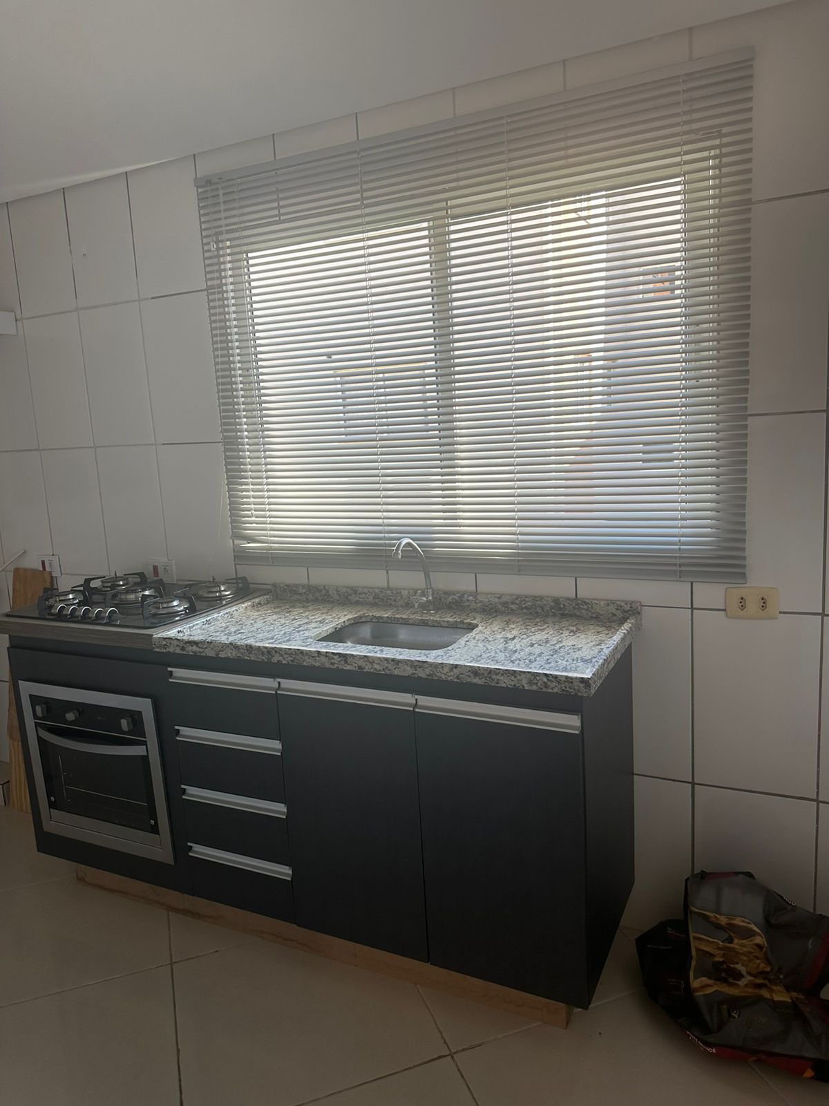 Cozinha: equipada com gabinete de pia e forno.