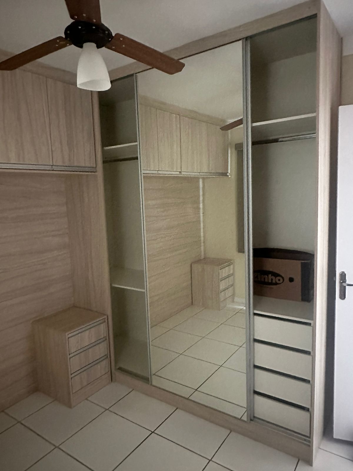 Quarto: com guarda roupa e painel de tv,