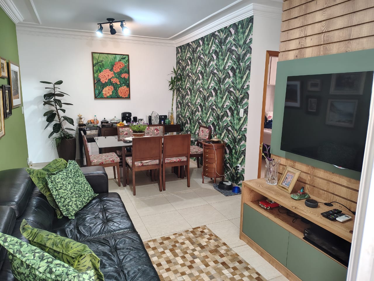 2 quartos , dois banheiros, sala, cozinha, área de serviço, varanda .