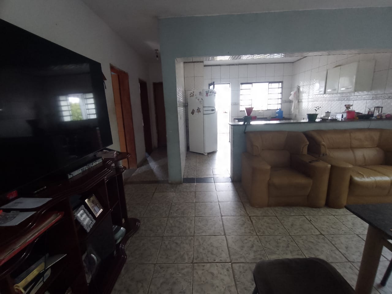 3 quartos 2 banheiros, garagem para 3 carros, 2 salas de estar 2 cozinhas, lavanderia com lavabo e vista para o sol da manhã e quintal espaçoso para fazer uma piscina.